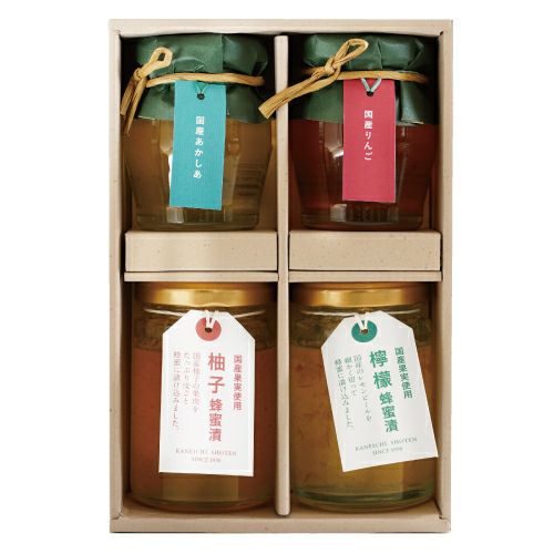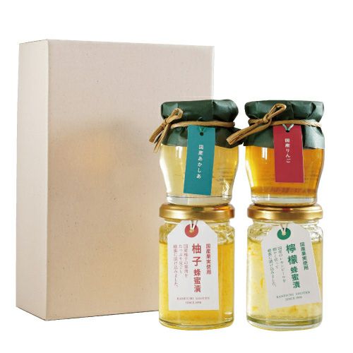 画像拡大 商品番号 Gift-JD4 国産蜂蜜と国産果実の蜂蜜漬けギフトセット [ 37 ポイント進呈 ] 期間限定 ¥ 3,699 税込 のし・包装(必須) 選択してください 不要 包装のみ 包装+内のし 包装+外のし のしの用途(必須) 選択してください 不要 お歳暮 お中元 お年賀 御礼 紅白無地のし 御祝 ご結婚御祝 内祝 結婚内祝 お見舞(病気) 志 御供 粗供養 その他(通信欄へ記入) お渡し用袋(必須) お渡し用袋をお選びください。 選択してください 不要(+¥0 税込) 必要(+¥55 税込) お気に入りに登録する 1 2 3 4 5 6 7 8 9 10+ カートに入れる 商品についてのお問い合わせ 商品説明 国産蜂蜜と国産果実の蜂蜜漬けギフトセット 人気の国産蜂蜜2種類と、ドリンクはもちろんトーストやヨーグルトのトッピングとしてもおすすめの蜂蜜漬けが2種類入ったギフトセット 【セット内容】 国産あかしあ蜂蜜、国産りんご蜂蜜 各105g 檸檬(レモン)蜂蜜漬、柚子蜂蜜漬け 各140g ●国産あかしあ蜂蜜 程よい甘さで色は透明に近くクセもないため人気の蜂蜜。 特にあかしあ蜂蜜は紅茶に入れても紅茶が濁りにくいとされおすすめです。 冬場でも結晶しにくく、扱いやすいのが特徴。 ●国産りんご蜂蜜 りんごの花から採れる蜂蜜は、フルーティな味わいが特徴。 りんごの果実を思わせるジューシーな甘みは誰にでも愛されます。 アップルパイなどのお菓子作りにもおすすめです。 ●檸檬(れもん)蜂蜜漬 細かく切ったレモンピールを蜂蜜にミックスしジューシーに、さらに酸味もしっかりと仕上げました。 お子様やご年配の方でも食べやすく、飲みやすく仕上げております。 5~6倍のお水で割ってレモネードや焼酎の水割りに入れるだけでなく、毎朝のトーストのトッピングとしてもおススメです。 ●柚子蜂蜜漬 たっぷりの国産柚子の果肉を皮ごと蜂蜜に漬け込みました。 柚子果皮の弾力感は嫌味がなくさっぱり。 5~6倍のお湯や炭酸で割って柚子ドリンクに。 ヨーグルトやレアチーズケーキへのフルーツソースとしてもおススメです。 ※ギフト箱代を含んだ価格となっているので、ギフト箱のご指定は不要です。 ※のし・かけ紙をご希望された場合、備考欄に記入がなければ内のし、名入れ無しでお届けいたします。 レビュー投稿で、蜜蜂ポイント(38ポイント)プレゼント! レビューを書く 秋は蜂蜜酒(ミード)が美味しい季節 メール便で簡単受取。ポストに届く蜂蜜 今年採れたての蜂蜜いかがですか 忙しいあなたへ。スティックタイプの蜂蜜が手軽で便利! 人気ランキング はちみつ商品 1 【2025年新蜜・生蜂蜜】あかしあ蜂蜜(大阪府柏原市産)シングルオリジンハニー0435 1,620円 税込 2 未来のミツバチを守る日本の蜂蜜 シールアップパウチ入り125g|寄付型蜂蜜|SDGs 1,080円 税込 3 スティックハニープラス ハニーハンターセレクト関西蜂蜜食べ比べセット~めっちゃ美味しい蜂蜜やで~ 1,404円 税込 4 檸檬(レモン)蜂蜜漬|国産果実使用|350g 1,080円 税込 蜂蜜酒(ミード) 1 The MEAD(ザ・ミード)|京都蜂蜜酒醸造所 3,850円 税込 2 The MEAD 京都(ザ・ミード キョウト)|京都蜂蜜酒醸造所 5,500円 税込 3 はちみつのお酒 蜜月|250ml 1,518円 税込 4 ヤドヴィガ|極甘|750ml|ポーランドミード|アピス 6,930円 税込 “当たり年”の特別なれんげ蜂蜜 新登場 10年に一度の咲きっぷり 【大阪・関西万博で高評価】98%が“美味しい”と回答! 「生はちみつ」が普通のはちみつよりすごいってホント? 【蜂蜜酒 ミード】はちみつのお酒ってこんなお酒 手軽においしく、毎日の健康習慣をサポートする「スティックハニープラス」大袋シリーズ メール便で簡単受取。ポストに届く蜂蜜 蜂蜜から造った人類最古のお酒「蜂蜜酒(ミード)」優しい甘さのお酒です 新商品、入荷しました。ぜひご賞味ください。 お知らせ 2025.10.3 蜂蜜がもっと好きになるハニーライフマガジン「HONEY TIME vol.64」発行 2025.9.8 「第4回 FRONTIER SPIRITS」に出展します|2025.9.14 2025.9.5 今日はどの蜂蜜にする?国産蜂蜜5種類を食べ比べ 毎日違う蜂蜜で選ぶ楽しみを 2025.9.3 季節の香りを、一杯に。3か月連続で楽しむ新作はちみつ酒 ハロウィンも、冬の足音も、ミードと一緒に楽しもう!