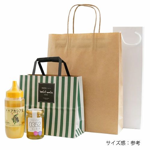 画像拡大 商品番号 bag_option お渡し用紙袋 [ 1 ポイント進呈 ] 期間限定 ¥ 55 税込 お気に入りに登録する 1 2 3 4 5 6 7 8 9 10+ カートに入れる 商品についてのお問い合わせ 商品説明 お渡し用の袋をご希望の際に、スタッフがアイテムサイズに応じてセレクトしお付けいたします。 商品により、無地の袋となる場合があります。何卒ご了承ください。 ※袋のみの購入はしていただけません。商品と一緒にご注文ください。 ※ご希望の枚数分ご注文ください。 レビュー投稿で、蜜蜂ポイント(38ポイント)プレゼント! レビューを書く 秋は蜂蜜酒(ミード)が美味しい季節 メール便で簡単受取。ポストに届く蜂蜜 今年採れたての蜂蜜いかがですか 忙しいあなたへ。スティックタイプの蜂蜜が手軽で便利! 人気ランキング はちみつ商品 1 【30%OFF】マルチフローラルマヌカハニー|スティックハニープラス|ニュージーランド産|160g(8g×20本) 2,160円 ⇒ 1,512円 税込 2 蜂蜜のあめさん(イタリア産レモン蜂蜜使用) 399円 税込 3 国産あかしあ蜂蜜500g 3,996円 税込 4 檸檬(レモン)蜂蜜漬|国産果実使用|350g 1,080円 税込 蜂蜜酒(ミード) 1 The MEAD 紅白ギフトセット(The MEAD & The MEAD さくら)|京都蜂蜜酒醸造所|各250ml 4,400円 税込 2 ヤドヴィガ|極甘|750ml|ポーランドミード|アピス 6,930円 税込 3 The MEAD(ザ・ミード)|京都蜂蜜酒醸造所 3,850円 税込 4 ルベルスキ(編みカゴ入り) |極甘|750ml 7,700円 税込 “当たり年”の特別なれんげ蜂蜜 新登場 10年に一度の咲きっぷり 【大阪・関西万博で高評価】98%が“美味しい”と回答! 「生はちみつ」が普通のはちみつよりすごいってホント? 【蜂蜜酒 ミード】はちみつのお酒ってこんなお酒 手軽においしく、毎日の健康習慣をサポートする「スティックハニープラス」大袋シリーズ メール便で簡単受取。ポストに届く蜂蜜 蜂蜜から造った人類最古のお酒「蜂蜜酒(ミード)」優しい甘さのお酒です 新商品、入荷しました。ぜひご賞味ください。 お知らせ 2025.12.26 免疫ケアに寄り添う1か月。 試して、選んで、続けられる。 “はじめてのマヌカハニー” キャンペーン開催(2026.1/14~) 2025.12.3 蜂蜜がもっと好きになるハニーライフマガジン「HONEY TIME vol.66」発行 2025.9.8 「第4回 FRONTIER SPIRITS」に出展します|2025.9.14 2025.9.5 今日はどの蜂蜜にする?国産蜂蜜5種類を食べ比べ 毎日違う蜂蜜で選ぶ楽しみを