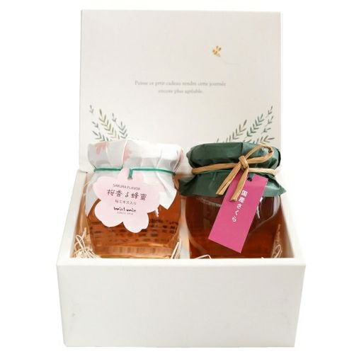 画像拡大 商品番号 Gift-sakura_2 桜香る蜂蜜と国産さくら蜂蜜の春ギフト [ 23 ポイント進呈 ] 期間限定 ¥ 2,295 税込 のし・包装(必須) 選択してください 不要 包装のみ 包装+内のし 包装+外のし のしの用途(必須) 選択してください 不要 お歳暮 お中元 お年賀 御礼 紅白無地のし 御祝 ご結婚御祝 内祝 結婚内祝 お見舞(病気) 志 御供 粗供養 その他(通信欄へ記入) お渡し用袋(必須) お渡し用袋をお選びください。 選択してください 不要(+¥0 税込) 必要(+¥55 税込) お気に入りに登録する 1 2 3 4 5 6 7 8 9 10+ カートに入れる 商品についてのお問い合わせ 商品説明 贈り物におすすめ!桜香る華やかな春の蜂蜜ギフト 春限定アイテム「桜香る蜂蜜」と、香り豊かな「国産さくら蜂蜜」の春にぴったりなプチギフトセット。 ホワイトデーの贈り物にはもちろん、入学や卒業、新生活への贈り物としてもおすすめです。 【セット内容】 国産さくら蜂蜜、桜香る蜂蜜 各105g ●国産さくら蜂蜜 やさしい甘さとほのかな香りが特徴で、味わった後に桜の香りがほのかに口に漂います。 プレーンなヨーグルトやアイスクリームなどにかけてシンプルに 香りと甘さを味わっていただくのがおすすめ。 ●桜香る蜂蜜 天然の桜の花抽出エキスを使用し、ほんのりピンクに色づいた蜂蜜は、口に含んだ瞬間、ふわっと桜の優雅な香りが広がります。 [原材料] 精製蜂蜜(国内製造)、桜の花シロップ液(砂糖混合ぶどう糖果糖液糖、桜の花抽出物)/香料、酸味料 ※精製蜂蜜はミャンマー産の蜂蜜を日本国内で精製加工しています。 [保存方法]冷暗所にて保存 [賞味期間]製造日より2年 ※蜂蜜使用のため一歳未満の乳児には与えないでください ※ギフト箱代を含んだ価格となっているので、ギフト箱のご指定は不要です。 ※のし・かけ紙をご希望された場合、備考欄に記入がなければ内のし、名入れ無しでお届けいたします。 レビュー投稿で、蜜蜂ポイント(38ポイント)プレゼント! レビューを書く 秋は蜂蜜酒(ミード)が美味しい季節 メール便で簡単受取。ポストに届く蜂蜜 今年採れたての蜂蜜いかがですか 忙しいあなたへ。スティックタイプの蜂蜜が手軽で便利! 人気ランキング はちみつ商品 1 【30%OFF】マルチフローラルマヌカハニー|スティックハニープラス|ニュージーランド産|160g(8g×20本) 2,160円 ⇒ 1,512円 税込 2 スティックハニープラス ハニーハンターセレクト10種類食べ比べ|国産蜂蜜 1,296円 税込 3 国産あかしあ蜂蜜500g 3,996円 税込 4 檸檬(レモン)蜂蜜漬|国産果実使用|350g 1,080円 税込 蜂蜜酒(ミード) 1 The MEAD 紅白ギフトセット(The MEAD & The MEAD さくら)|京都蜂蜜酒醸造所|各250ml 4,400円 税込 2 ヤドヴィガ|極甘|750ml|ポーランドミード|アピス 6,930円 税込 3 The MEAD(ザ・ミード)|京都蜂蜜酒醸造所 3,850円 税込 4 ルベルスキ(編みカゴ入り) |極甘|750ml 7,700円 税込 “当たり年”の特別なれんげ蜂蜜 新登場 10年に一度の咲きっぷり 【大阪・関西万博で高評価】98%が“美味しい”と回答! 「生はちみつ」が普通のはちみつよりすごいってホント? 【蜂蜜酒 ミード】はちみつのお酒ってこんなお酒 手軽においしく、毎日の健康習慣をサポートする「スティックハニープラス」大袋シリーズ メール便で簡単受取。ポストに届く蜂蜜 蜂蜜から造った人類最古のお酒「蜂蜜酒(ミード)」優しい甘さのお酒です 新商品、入荷しました。ぜひご賞味ください。 お知らせ 2025.12.26 免疫ケアに寄り添う1か月。 試して、選んで、続けられる。 “はじめてのマヌカハニー” キャンペーン開催(2026.1/14~) 2025.12.3 蜂蜜がもっと好きになるハニーライフマガジン「HONEY TIME vol.66」発行 2025.9.8 「第4回 FRONTIER SPIRITS」に出展します|2025.9.14 2025.9.5 今日はどの蜂蜜にする?国産蜂蜜5種類を食べ比べ 毎日違う蜂蜜で選ぶ楽しみを