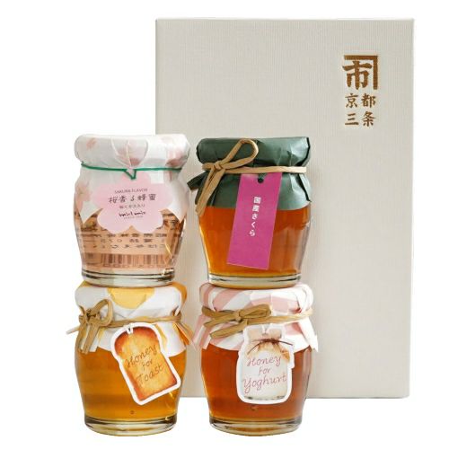 画像拡大 商品番号 Gift-sakura_byuse 桜香る 春のはちみつセレクション [ 39 ポイント進呈 ] 期間限定 ¥ 3,861 税込 のし・包装(必須) 選択してください 不要 包装のみ 包装+内のし 包装+外のし のしの用途(必須) 選択してください 不要 お歳暮 お中元 お年賀 御礼 紅白無地のし 御祝 ご結婚御祝 内祝 結婚内祝 お見舞(病気) 志 御供 粗供養 その他(通信欄へ記入) お渡し用袋(必須) お渡し用袋をお選びください。 選択してください 不要(+¥0 税込) 必要(+¥55 税込) お気に入りに登録する 1 2 3 4 5 6 7 8 9 10+ カートに入れる 商品についてのお問い合わせ 商品説明 春にぴったりなさくら蜂蜜と人気の用途別蜂蜜の詰合せ! 香り豊かな「国産さくら蜂蜜」、春限定アイテム「桜香る蜂蜜」、ハニーコンシェルジュのセレクトした「トーストに合う蜂蜜」「ヨーグルトに合う蜂蜜」が入った春におススメの詰め合わせギフト。朝食やティータイム、お酒のお供など様々なシーンで使用すると蜂蜜の楽しさが広がります。 【セット内容】 国産さくら蜂蜜、桜香る蜂蜜、トーストに合う蜂蜜、ヨーグルトに合う蜂蜜 各105g ●国産さくら蜂蜜 やさしい甘さとほのかな香りが特徴で、味わった後に桜の香りがほのかに口に漂います。 プレーンなヨーグルトやアイスクリームなどにかけてシンプルに 香りと甘さを味わっていただくのがおすすめ。 ●桜香る蜂蜜 天然の桜の花抽出エキスを使用し、ほんのりピンクに色づいた蜂蜜は、口に含んだ瞬間、ふわっと桜の優雅な香りが広がります。 [原材料] 精製蜂蜜(国内製造)、桜の花シロップ液(砂糖混合ぶどう糖果糖液糖、桜の花抽出物)/香料、酸味料 ※精製蜂蜜はミャンマー産の蜂蜜を日本国内で精製加工しています。 ●トーストに合う蜂蜜 バランスのいい甘みが特徴のアルゼンチン産百花蜜を使用。毎朝のハニートーストは一日の元気の源。 ●ヨーグルトに合う蜂蜜 濃厚な甘みとほのかな酸味のカナダ産ブルーベリー蜂蜜を使用。プレーンなヨーグルトにたっぷりとかけて食べると腸内環境を整え、朝のエネルギーチャージに。 [保存方法]冷暗所にて保存 [賞味期間]製造日より2年 ※蜂蜜使用のため一歳未満の乳児には与えないでください ※ギフト箱代を含んだ価格となっているので、ギフト箱のご指定は不要です。 ※のし・かけ紙をご希望された場合、備考欄に記入がなければ内のし、名入れ無しでお届けいたします。 レビュー投稿で、蜜蜂ポイント(38ポイント)プレゼント! レビューを書く 秋は蜂蜜酒(ミード)が美味しい季節 メール便で簡単受取。ポストに届く蜂蜜 今年採れたての蜂蜜いかがですか 忙しいあなたへ。スティックタイプの蜂蜜が手軽で便利! 人気ランキング はちみつ商品 1 【30%OFF】マルチフローラルマヌカハニー|スティックハニープラス|ニュージーランド産|160g(8g×20本) 2,160円 ⇒ 1,512円 税込 2 スティックハニープラス ハニーハンターセレクト10種類食べ比べ|国産蜂蜜 1,296円 税込 3 国産あかしあ蜂蜜500g 3,996円 税込 4 檸檬(レモン)蜂蜜漬|国産果実使用|350g 1,080円 税込 蜂蜜酒(ミード) 1 The MEAD 紅白ギフトセット(The MEAD & The MEAD さくら)|京都蜂蜜酒醸造所|各250ml 4,400円 税込 2 ヤドヴィガ|極甘|750ml|ポーランドミード|アピス 6,930円 税込 3 The MEAD(ザ・ミード)|京都蜂蜜酒醸造所 3,850円 税込 4 ルベルスキ(編みカゴ入り) |極甘|750ml 7,700円 税込 “当たり年”の特別なれんげ蜂蜜 新登場 10年に一度の咲きっぷり 【大阪・関西万博で高評価】98%が“美味しい”と回答! 「生はちみつ」が普通のはちみつよりすごいってホント? 【蜂蜜酒 ミード】はちみつのお酒ってこんなお酒 手軽においしく、毎日の健康習慣をサポートする「スティックハニープラス」大袋シリーズ メール便で簡単受取。ポストに届く蜂蜜 蜂蜜から造った人類最古のお酒「蜂蜜酒(ミード)」優しい甘さのお酒です 新商品、入荷しました。ぜひご賞味ください。 お知らせ 2025.12.26 免疫ケアに寄り添う1か月。 試して、選んで、続けられる。 “はじめてのマヌカハニー” キャンペーン開催(2026.1/14~) 2025.12.3 蜂蜜がもっと好きになるハニーライフマガジン「HONEY TIME vol.66」発行 2025.9.8 「第4回 FRONTIER SPIRITS」に出展します|2025.9.14 2025.9.5 今日はどの蜂蜜にする?国産蜂蜜5種類を食べ比べ 毎日違う蜂蜜で選ぶ楽しみを