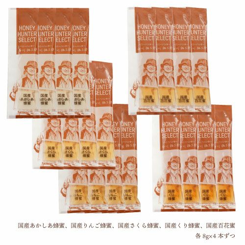 他の画像を見る メール便対応可 使い切りサイズ 【お買い得20本セット】国産蜂蜜5種類食べ比べ|スティックハニープラス|160g(8g×20本/5種類×各4本) 期間限定 ¥ 2,160 税込 カートに入れる お気に入りに登録する