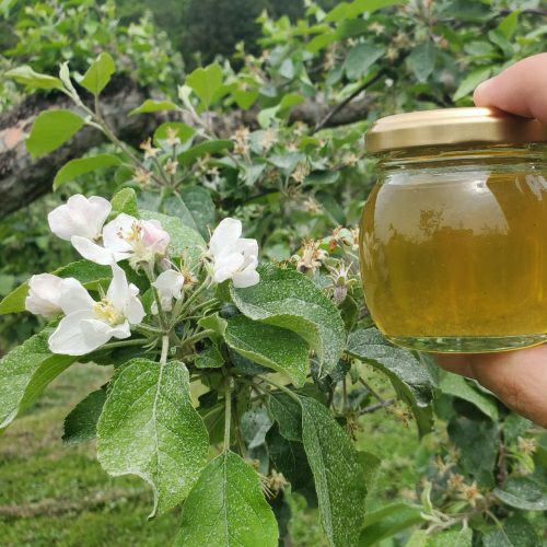 りんごの花から採れる蜂蜜は、ジューシーでフルーティな味わいが特徴。