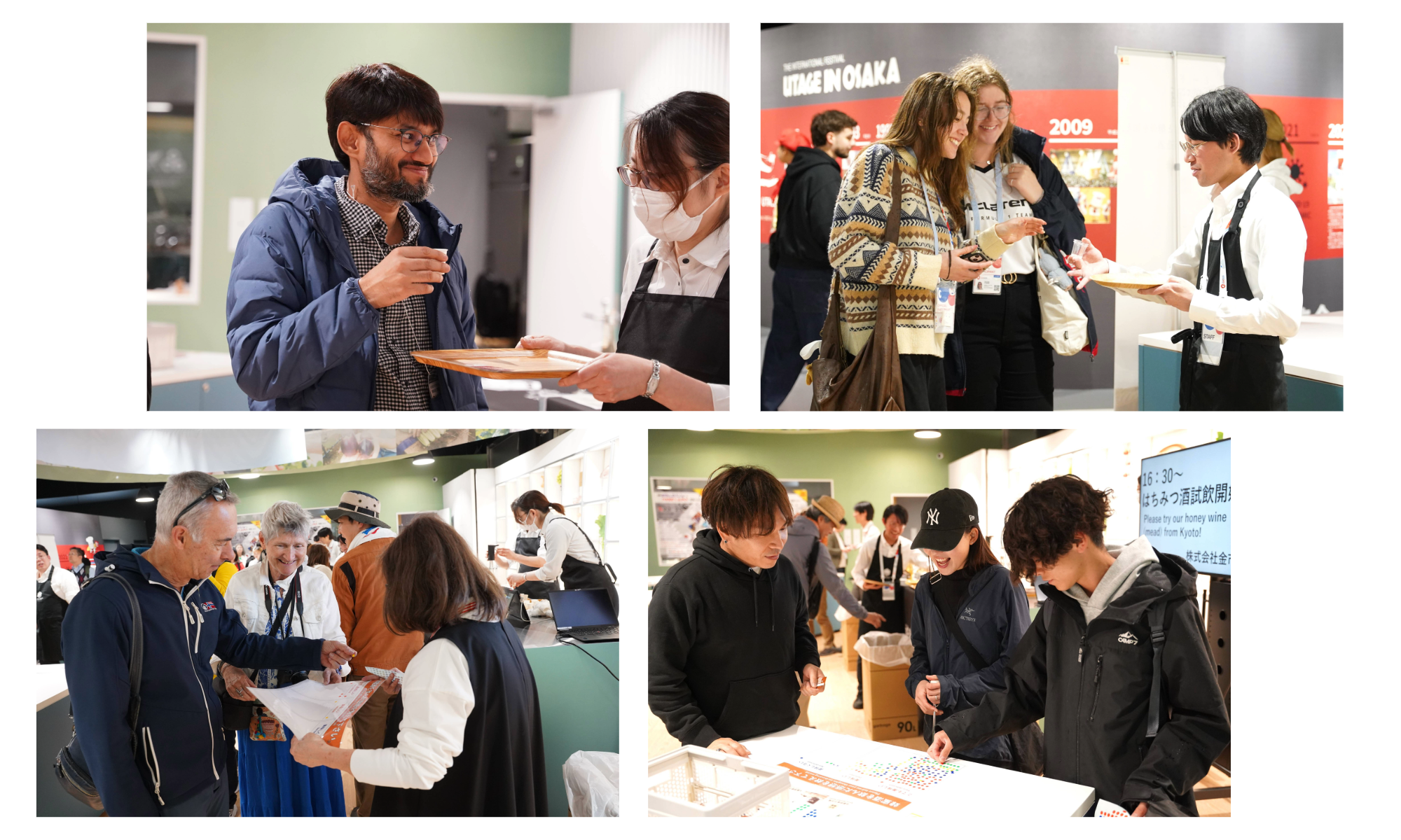 当日は、パビリオン内のプロモーションスペースに約400名の来場者をお迎えし、自社ブランド「京都蜂蜜酒醸造所」が手がける関西産はちみつ使用のミードをご試飲いただきました。会場内にて実施したアンケートでは、回答者約350名のうち98%の方が試飲したミードを「美味しい」と回答。関西発の新しいお酒として、多くの方々に関心と期待を寄せていただける結果となりました。