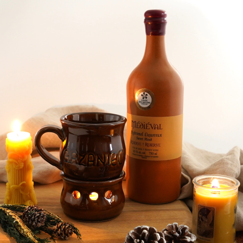 ミードにシナモンやクローブなどのお気に入りのスパイスを加え、キャンドルに火を灯して温めます。