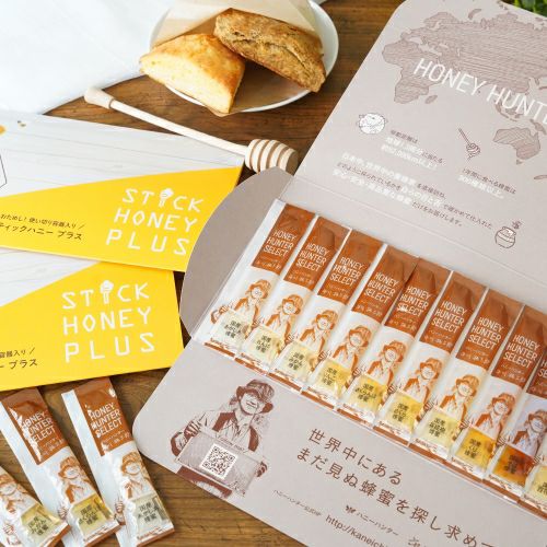 ハニーハンター市川拓三郎がセレクトした蜂蜜を、1回で使い切りやすい8gの小分けスティックにしました。