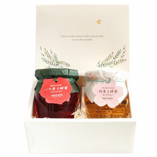 画像拡大 商品番号 Gift-kaoru2 バラと桜の香る蜂蜜ギフト [ 23 ポイント進呈 ] 期間限定 ¥ 2,268 税込 のし・包装(必須) 選択してください 不要 包装のみ 包装+内のし 包装+外のし のしの用途(必須) 選択してください 不要 お歳暮 お中元 お年賀 御礼 紅白無地のし 御祝 ご結婚御祝 内祝 結婚内祝 お見舞(病気) 志 御供 粗供養 その他(通信欄へ記入) お渡し用袋(必須) お渡し用袋をお選びください。 選択してください 不要(+¥0 税込) 必要(+¥55 税込) お気に入りに登録する 1 2 3 4 5 6 7 8 9 10+ カートに入れる 商品についてのお問い合わせ 商品説明 女性への贈り物に🌹香る蜂蜜シリーズの華やかな蜂蜜ギフト 華やかな色合いが人気の「バラ香る蜂蜜」と「桜香る蜂蜜」のギフトセット。 【セット内容】 バラ香る蜂蜜、桜香る蜂蜜 各105g ●バラ香る蜂蜜 バラエキスを使用しているので、バラ本来の色味とほのかな香りを楽しめます。 その美しい赤色と上品なバラの香りは、日常のティータイムを優雅なひとときに。 紅茶に加えれば贅沢なローズティーに、アイスやパンケーキのソースとしてもぴったり。 [原材料] 精製はちみつ(国内製造)、果糖、バラエキス/酸味料(クエン酸) ※精製蜂蜜はミャンマー産の蜂蜜を日本国内で精製加工しています ●桜香る蜂蜜 天然の桜の花抽出エキスを使用し、ほんのりピンクに色づいた蜂蜜は、口に含んだ瞬間、ふわっと桜の優雅な香りが広がります。 [原材料] 精製蜂蜜(国内製造)、桜の花シロップ液(砂糖混合ぶどう糖果糖液糖、桜の花抽出物)/香料、酸味料 ※精製蜂蜜はミャンマー産の蜂蜜を日本国内で精製加工しています [保存方法]冷暗所にて保存 [賞味期間]製造日より2年 ※蜂蜜使用のため一歳未満の乳児には与えないでください ※ギフト箱代を含んだ価格となっているので、ギフト箱のご指定は不要です。 ※のし・かけ紙をご希望された場合、備考欄に記入がなければ内のし、名入れ無しでお届けいたします。 レビュー投稿で、蜜蜂ポイント(38ポイント)プレゼント! レビューを書く 秋は蜂蜜酒(ミード)が美味しい季節 メール便で簡単受取。ポストに届く蜂蜜 今年採れたての蜂蜜いかがですか 忙しいあなたへ。スティックタイプの蜂蜜が手軽で便利! 人気ランキング はちみつ商品 1 【30%OFF】マルチフローラルマヌカハニー|スティックハニープラス|ニュージーランド産|160g(8g×20本) 2,160円 ⇒ 1,512円 税込 2 スティックハニープラス ハニーハンターセレクト10種類食べ比べ|国産蜂蜜 1,296円 税込 3 国産あかしあ蜂蜜500g 3,996円 税込 4 檸檬(レモン)蜂蜜漬|国産果実使用|350g 1,080円 税込 蜂蜜酒(ミード) 1 The MEAD 紅白ギフトセット(The MEAD & The MEAD さくら)|京都蜂蜜酒醸造所|各250ml 4,400円 税込 2 ヤドヴィガ|極甘|750ml|ポーランドミード|アピス 6,930円 税込 3 The MEAD(ザ・ミード)|京都蜂蜜酒醸造所 3,850円 税込 4 ルベルスキ(編みカゴ入り) |極甘|750ml 7,700円 税込 “当たり年”の特別なれんげ蜂蜜 新登場 10年に一度の咲きっぷり 【大阪・関西万博で高評価】98%が“美味しい”と回答! 「生はちみつ」が普通のはちみつよりすごいってホント? 【蜂蜜酒 ミード】はちみつのお酒ってこんなお酒 手軽においしく、毎日の健康習慣をサポートする「スティックハニープラス」大袋シリーズ メール便で簡単受取。ポストに届く蜂蜜 蜂蜜から造った人類最古のお酒「蜂蜜酒(ミード)」優しい甘さのお酒です 新商品、入荷しました。ぜひご賞味ください。 お知らせ 2025.12.26 免疫ケアに寄り添う1か月。 試して、選んで、続けられる。 “はじめてのマヌカハニー” キャンペーン開催(2026.1/14~) 2025.12.3 蜂蜜がもっと好きになるハニーライフマガジン「HONEY TIME vol.66」発行 2025.9.8 「第4回 FRONTIER SPIRITS」に出展します|2025.9.14 2025.9.5 今日はどの蜂蜜にする?国産蜂蜜5種類を食べ比べ 毎日違う蜂蜜で選ぶ楽しみを